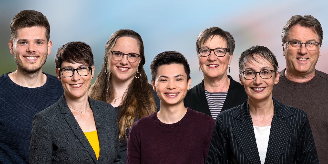 Bildlegende (v.l.n.r.): Rolf Schmid, Colette Basler, Daniela Leimgruber, Fabio Haller, Susanna Brogli Schoder, Elisabeth Burgener Brogli und Gunthard Niederbäumer (Collage: Peter Koller)